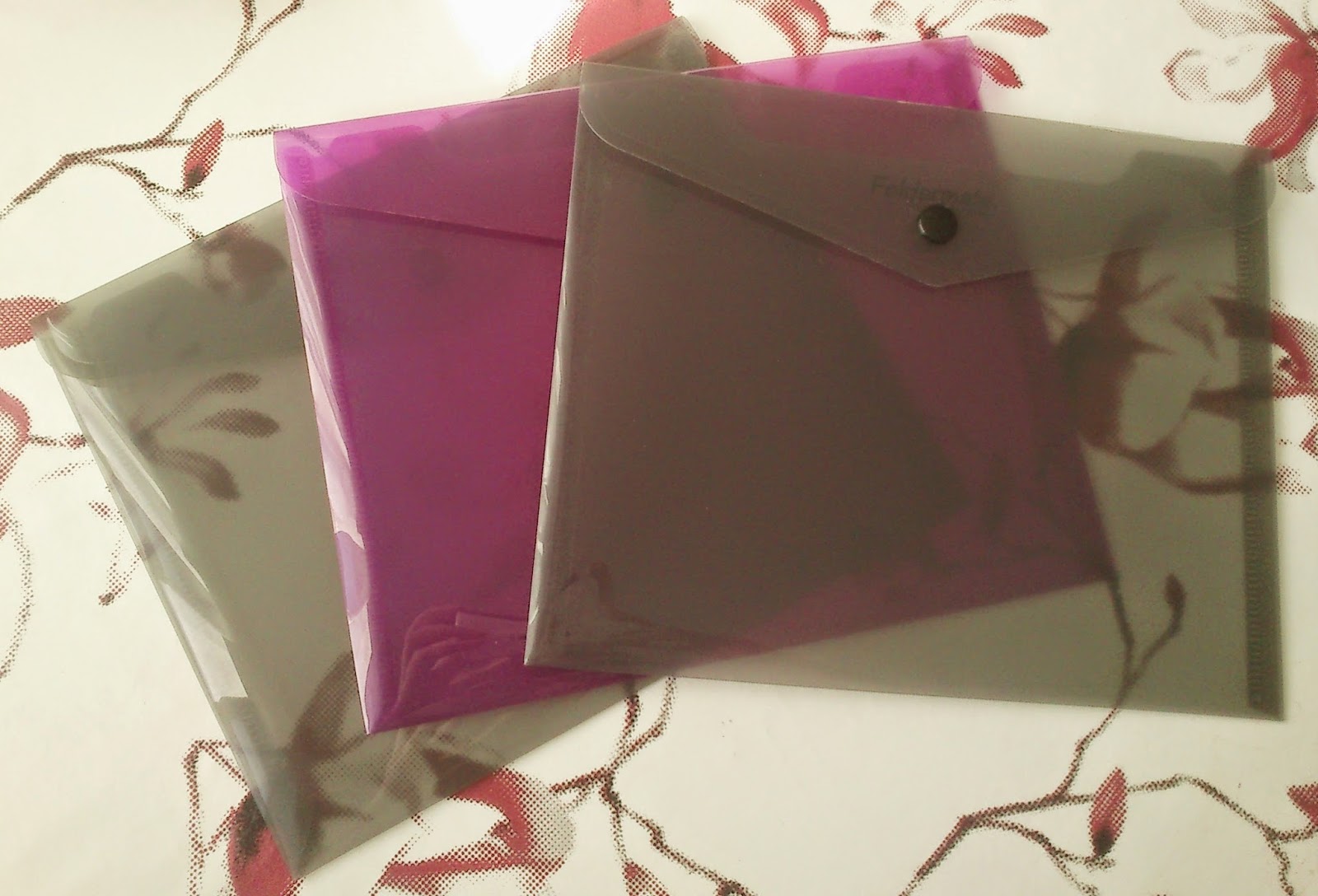Omotnice su nešto veće od A5 formata, čvrste, s malim gumbićom za zatvaranje, a dolaze u nekoliko boja – ja sam kupila dvije sive i jednu rozu.