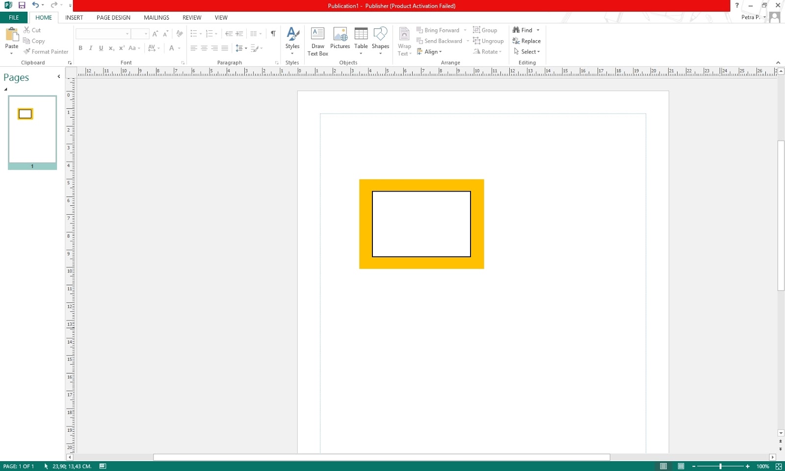 Naljepnica je skoro pa gotova. Jedino još spojite, tj. grupirajte oblik i okvir kako bi naljepnicu mogli bez problema micati po stranici. Kliknite na oblik, pritisnite i držite CTRL, kliknite na okvir i pritisnite Group (Grupiranje).