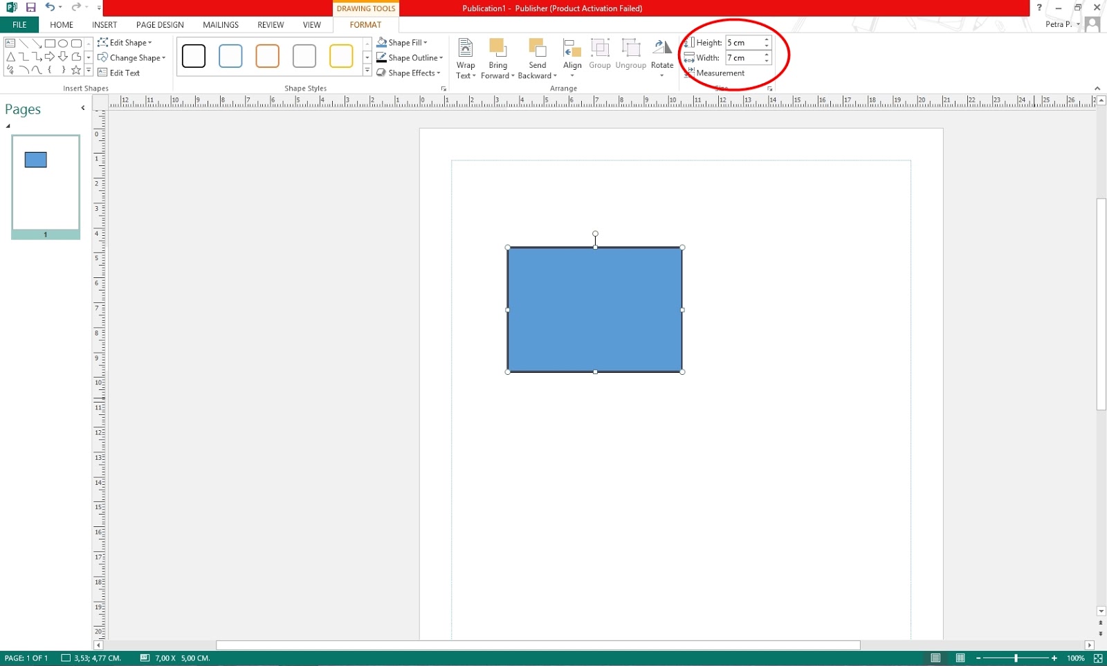 Povucite miš kako bi dobili izgled pravokutnika pa u desnom kutu promijenite veličinu oblika.