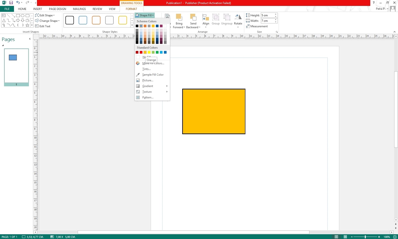 Boju oblika promijenit ćete tako da pritisnete Shape Fill (Ispuna oblika) i odaberete boju koju želite, u ovom slučaju narančastu.