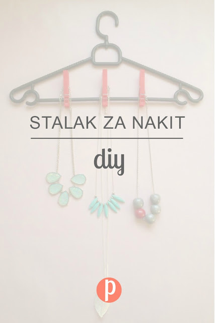 Daklem, za izradu ovog stalka za nakit (ogrlice) trebat će vam samo dvije stvari koje 100% već imate kod kuće: vješalica za odjeću i kvačice za rublje. 🙂