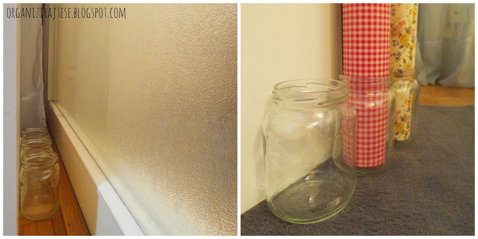 Kao stalak za role iskoristila sam tri staklenke koje sam poslagala uz stranicu stola i u njih stavila role papira. Za potrebe fotkanja zaokrenula sam stol, inače se ništa ne bi vidjelo. 🙂