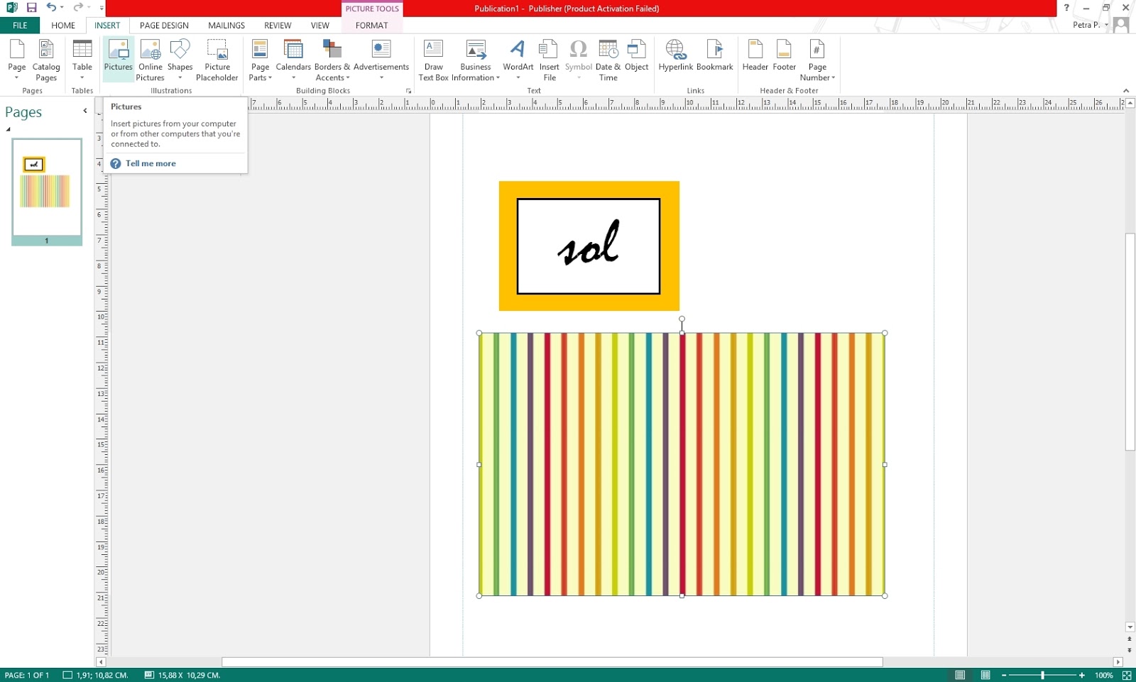Recimo da sada želite napraviti nešto drugačiju naljepnicu, npr. okruglu s prugicama. Najprije potražite odgovarajuće prugice upisivanjem ključnih riječi “free stripes pattern” u tražilicu i odaberite željeni uzorak. Spremite sliku i umetnite je u dokument klikom na Insert (Umetni).